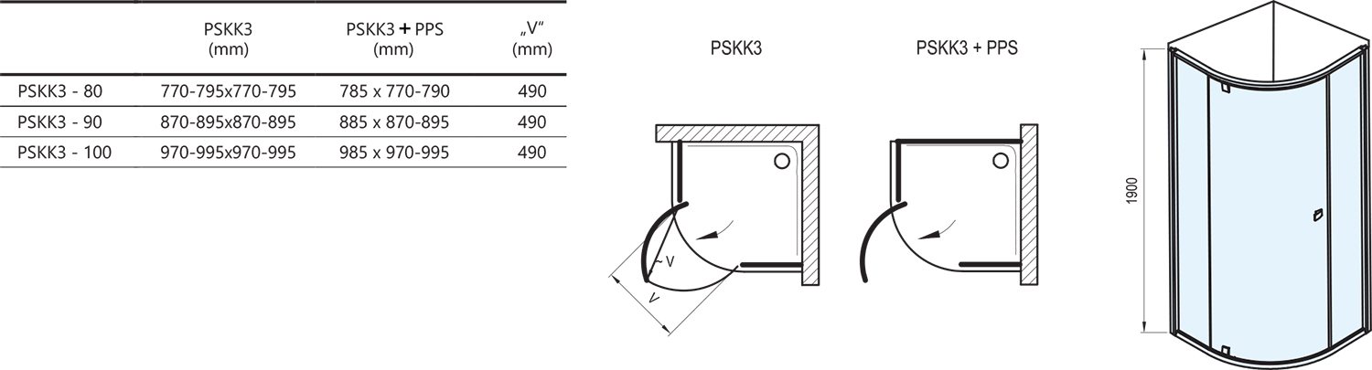 Výrobek tvoří dva pevné rovné díly a jeden ohýbaný díl jako otočné dveře. Otočením výrobku o 180° získáte levou nebo pravou variantu otevírání dveří. Montuje se do obloženého rohu koupelny na vaničky Ravak Elipso Pro nebo přímo na podlahu se zabudovaným odtokovým žlabem či podlahovou vpustí. Pokud nedisponujete vyzděným rohem, příčku můžete nahradit pevnou stěnou typu PPS. Pomocí nastavovacích profilů BLNPS se výrobek umí přizpůsobit stavebnímu otvoru až o 4 cm na každé straně.
